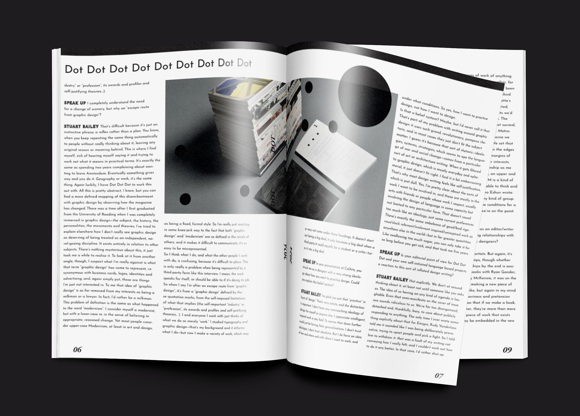 The design for "The Dot Dot Dot" magazine captures the essence of a publication that thrives on intellectual engagement, contemporary design, and the exploration of visual culture. Each spread of the magazine is a meticulous blend of typography, imagery, and content, creating a reading experience that is both thought-provoking and visually stimulating.