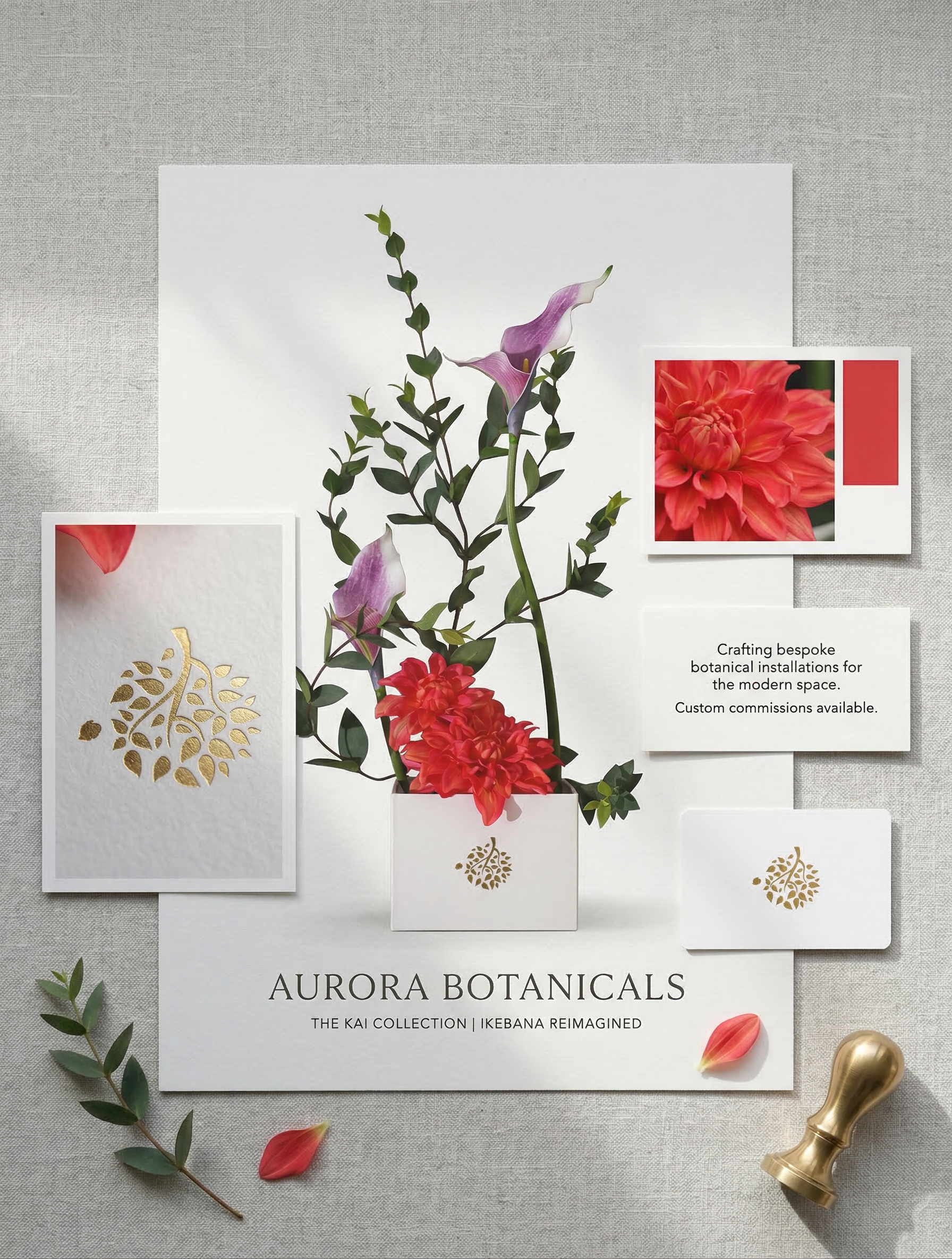 The visual system integrates botanical imagery, minimalist graphic elements, and editorial typography to establish a distinctive brand language. By balancing subtle textures, soft lighting, and clean layouts, the designs convey a sense of elegance and timelessness that resonates across digital and print media.