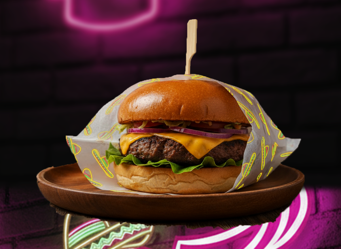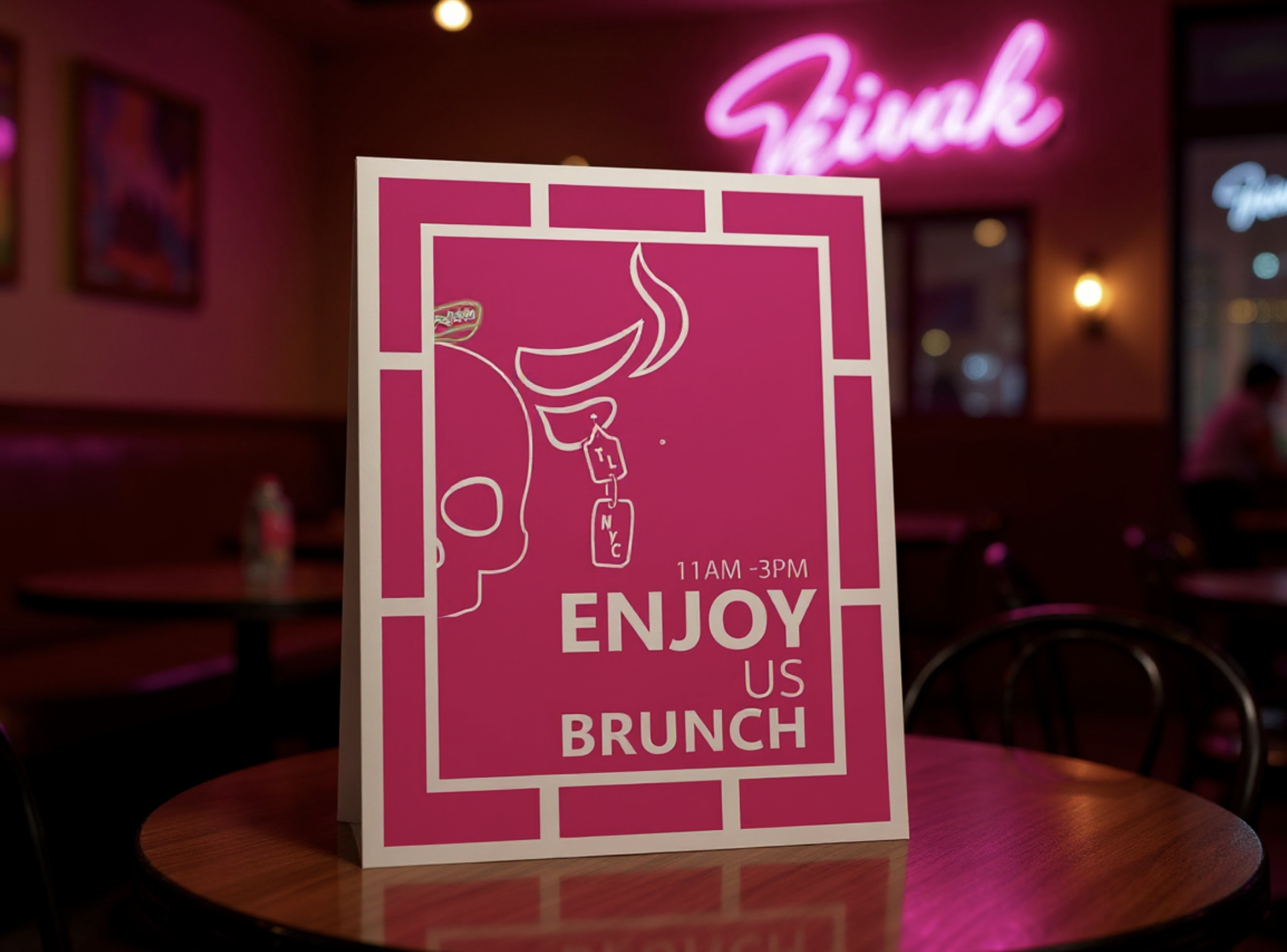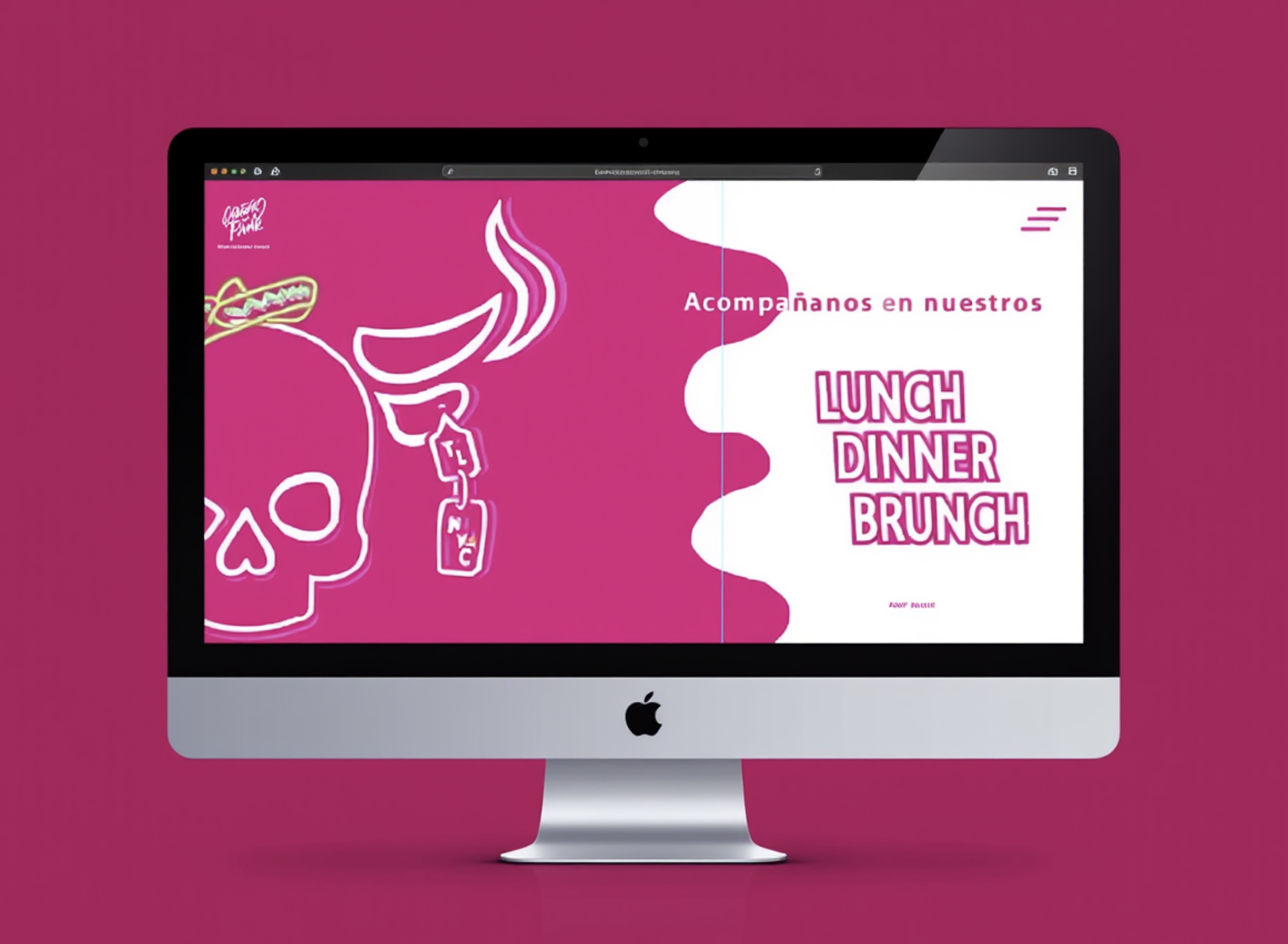 TYPO & COLOR The typography chosen is bold, rounded, and playful, which complements the energetic vibe of the brand. The font is both modern and approachable, ensuring that the brand feels accessible and appealing to the target demographic. The use of neon-styled text further reinforces the nighttime, party atmosphere. The use of bright pinks and purples, alongside black and white, infuses the brand with a sense of energy and excitement. These colors are not only eye-catching but also create a strong brand identity that is easily recognizable. The vibrant tones reflect the fun and lively atmosphere of the restaurant.