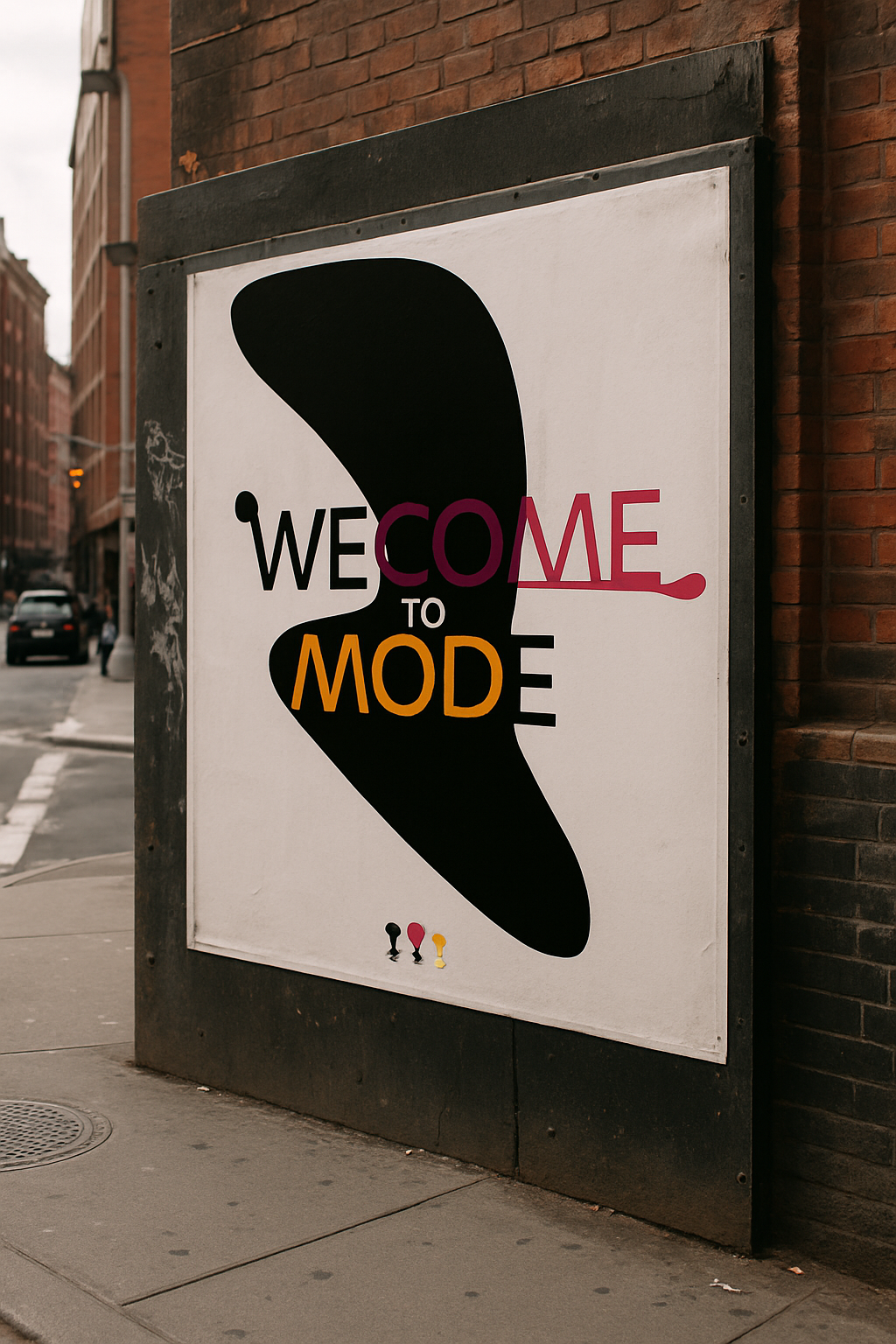 FASHION EVENT The design for the "We Come to Mode" event is a visually striking and conceptually rich representation that elegantly merges the worlds of fashion, design, and knowledge. The design captures the essence of the event's purpose: to invite and engage a diverse audience in an immersive experience of creativity and style.